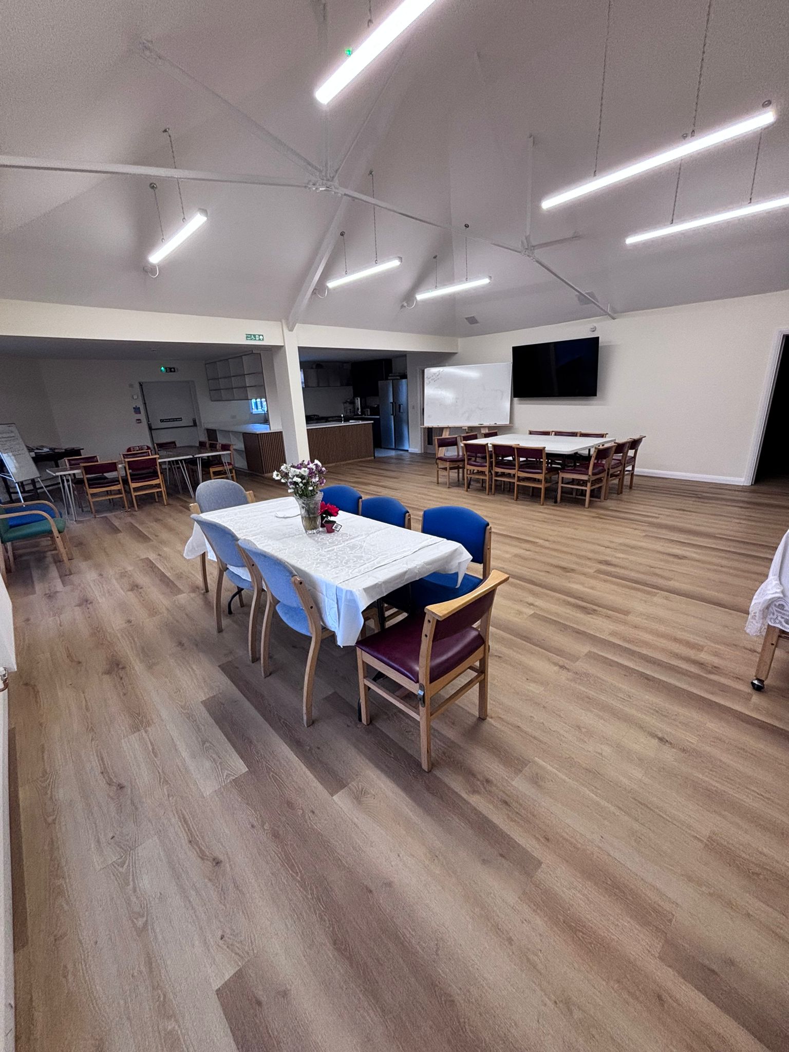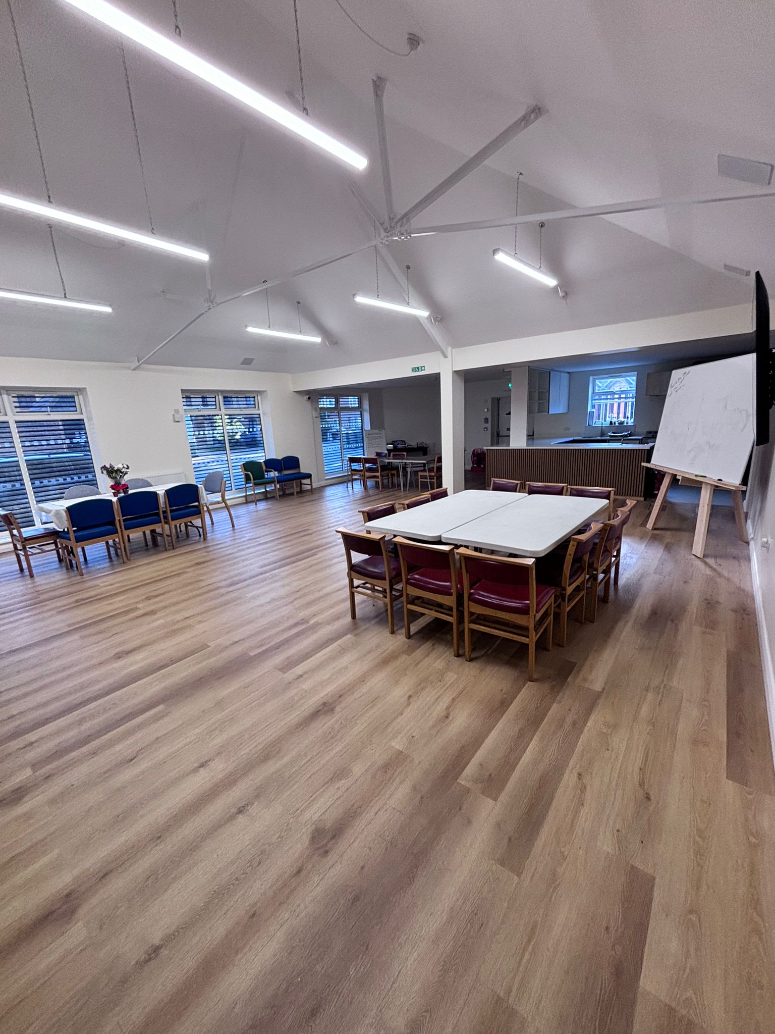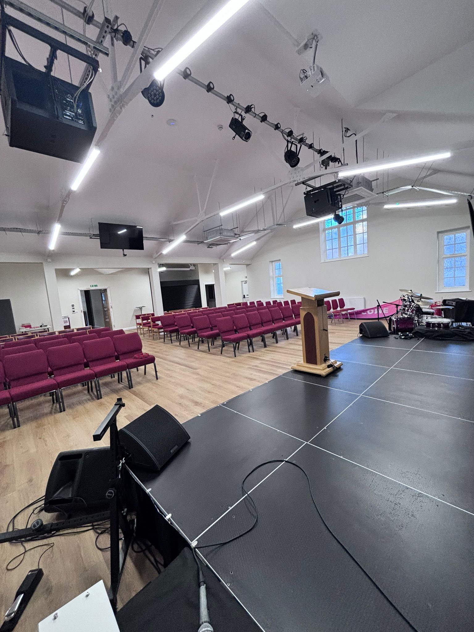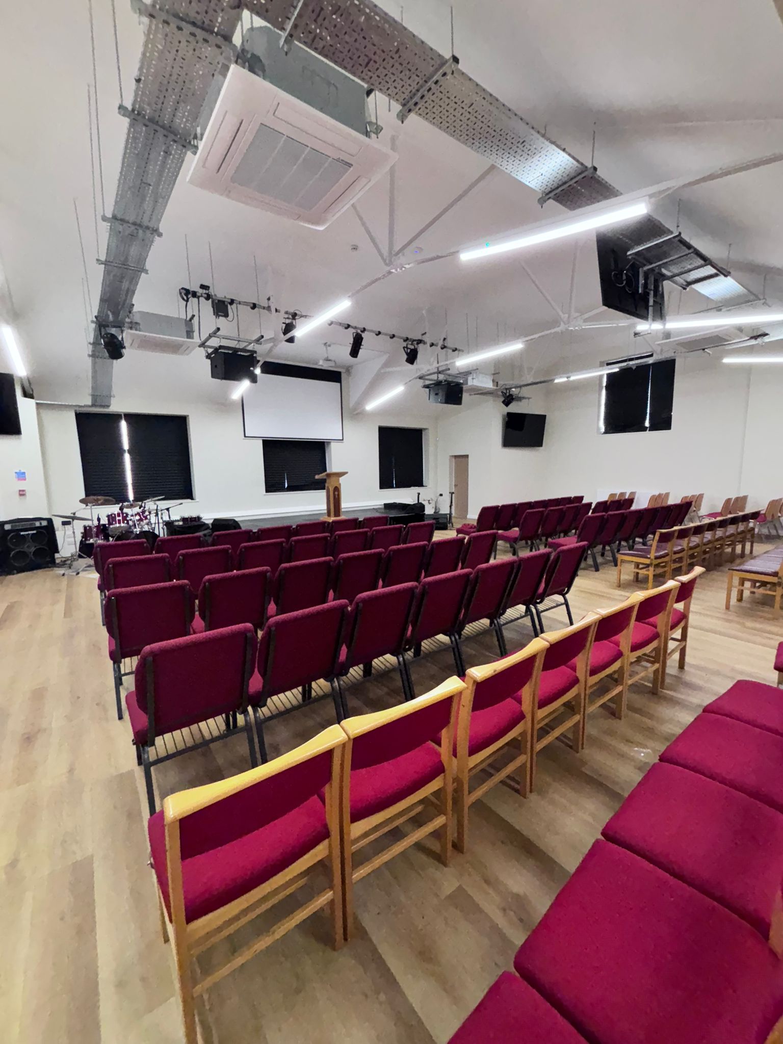 Two main spaces are available for hire: Cafe 3:16, which seats about 65 people, and the main church hall, which can seat about 200 people, depending on how the chairs are arranged. Cafe 3:16 is excellent for small wedding receptions, children’s parties, community meetings, and more. The main church hall is probably suitable for churches and other larger events. And for even bigger events, our stage is removable to give an even bigger area.